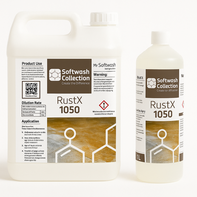 Softwash 1050 is a high-strength, acid-based cleaner formulated to remove rust stains and restore the appearance of steel and other metal surfaces. Engineered for both domestic and industrial use, it effectively targets oxidation, corrosion marks, and rust staining without damaging most treated or coated materials.